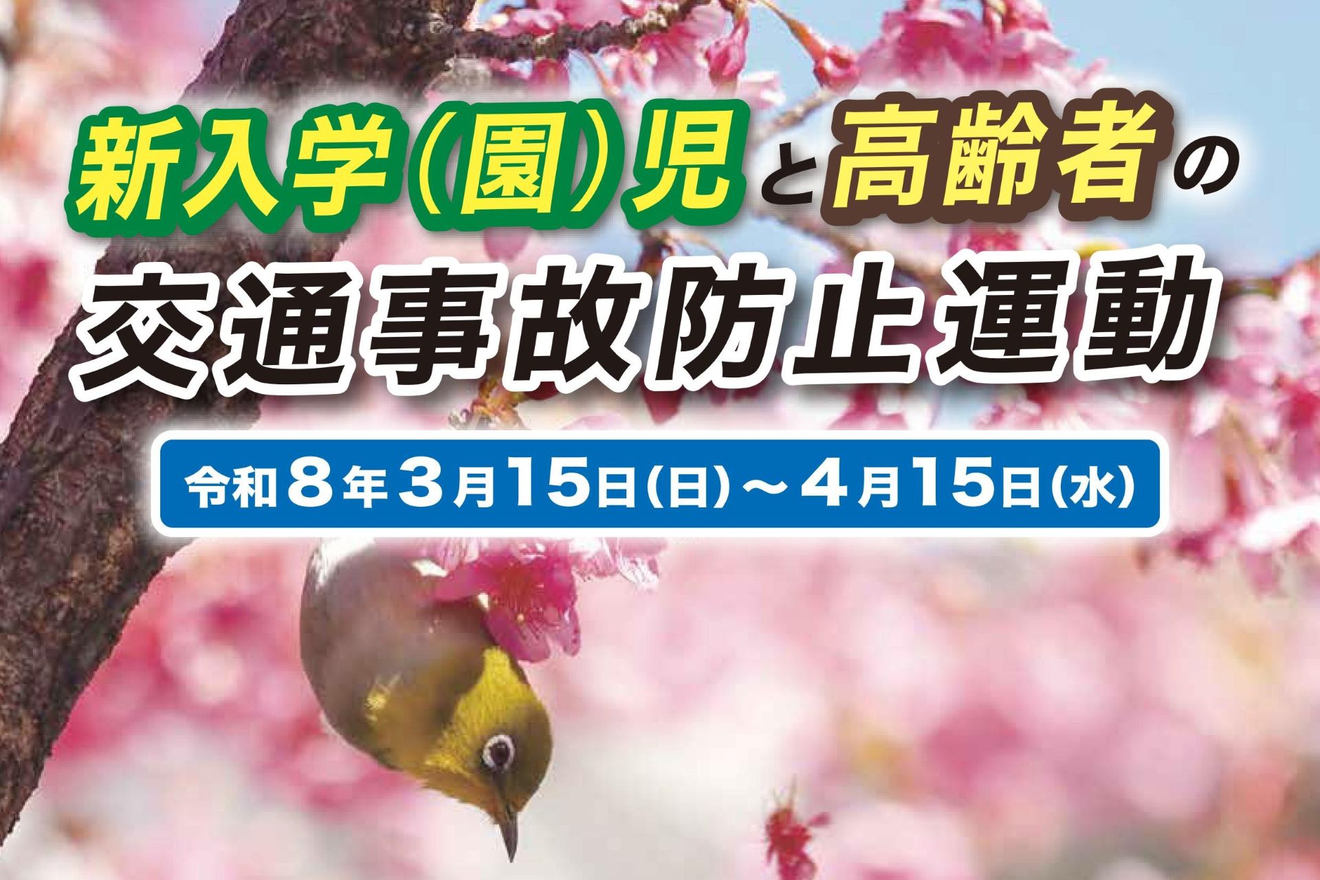 令和8年3月15日(日)から4月15日(水)まで、滋賀県では令和8年 新入学(園)児と高齢者の交通事故防止運動が実施されます。