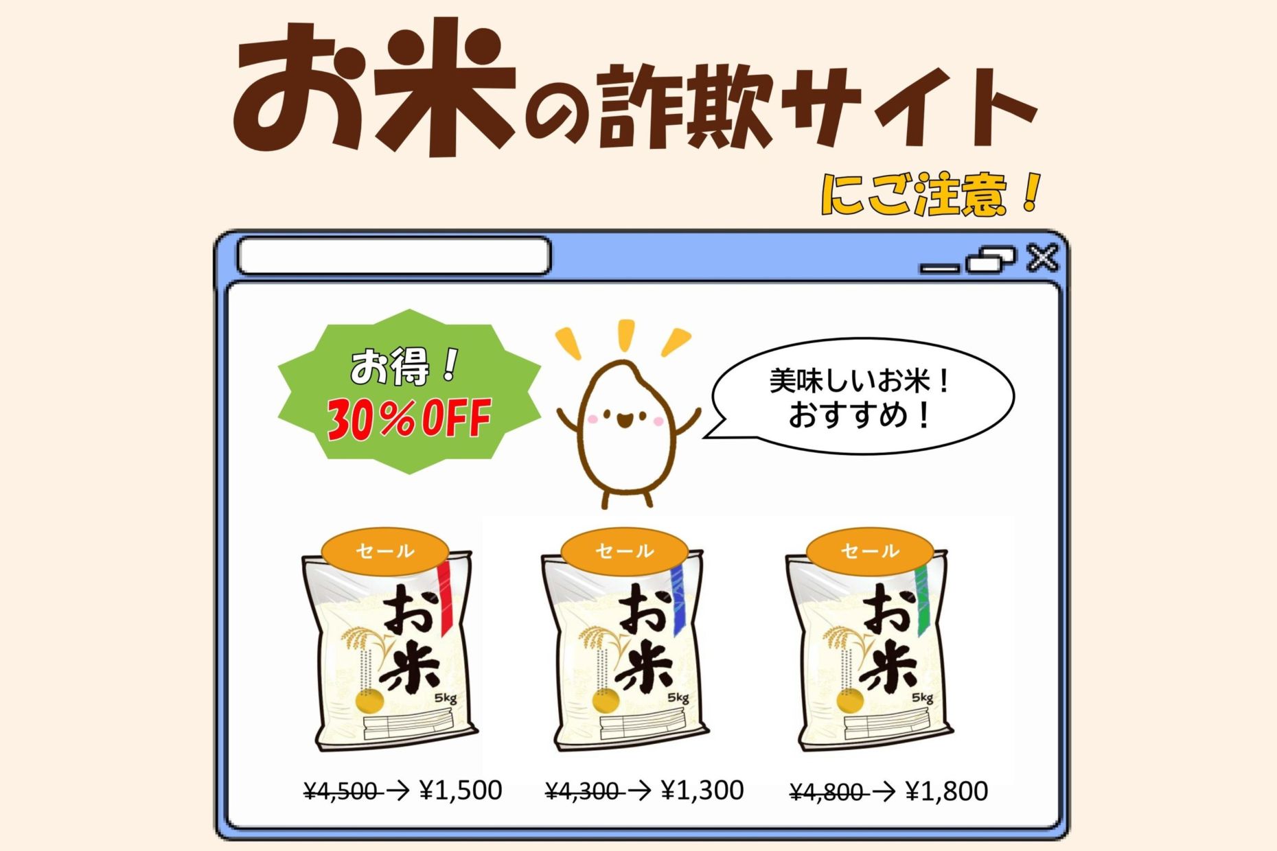お米の偽通販サイトにご注意ください