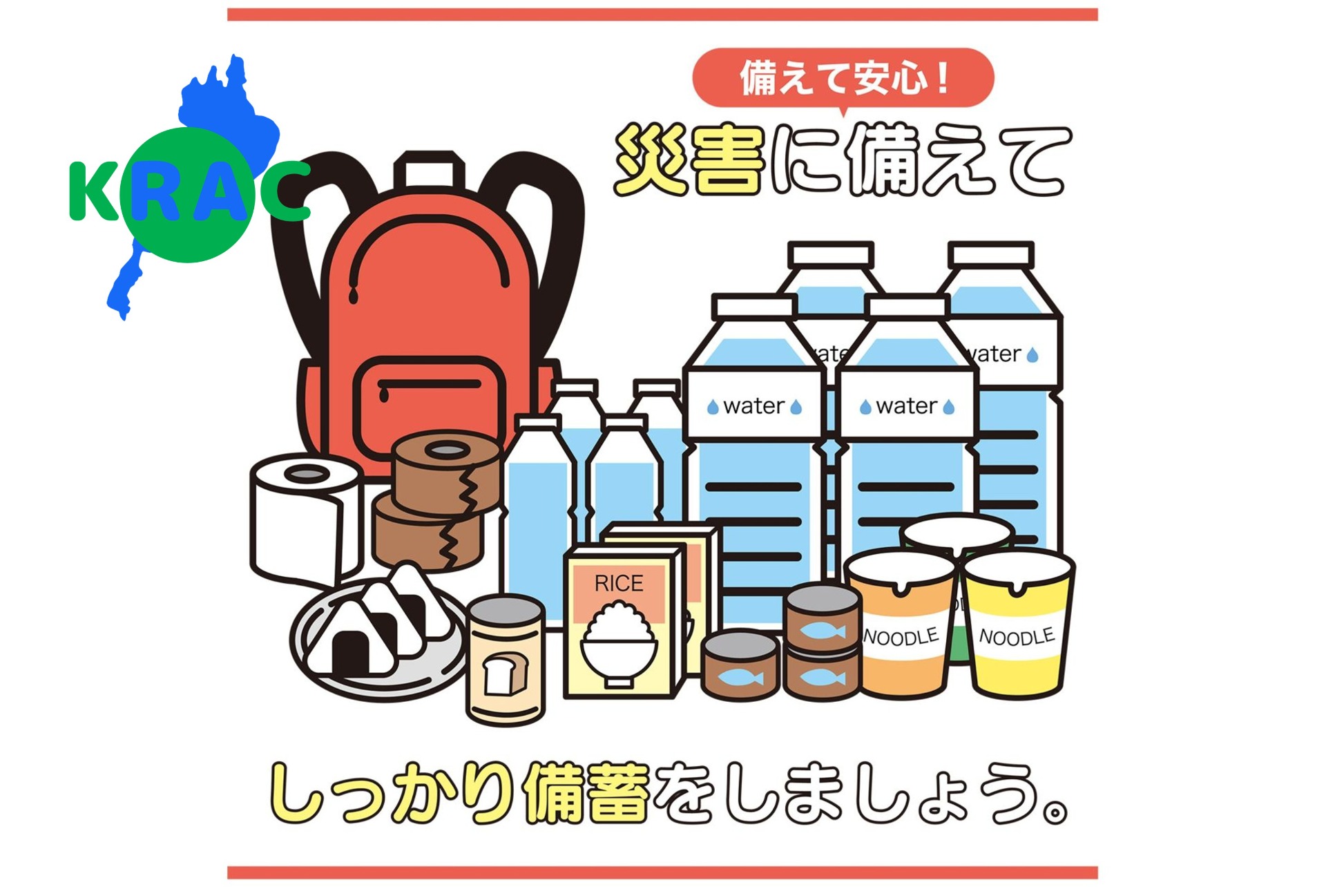 水・食料・懐中電灯・モバイルバッテリー・救急箱等、最低限の非常用品を常備しておきましょう!