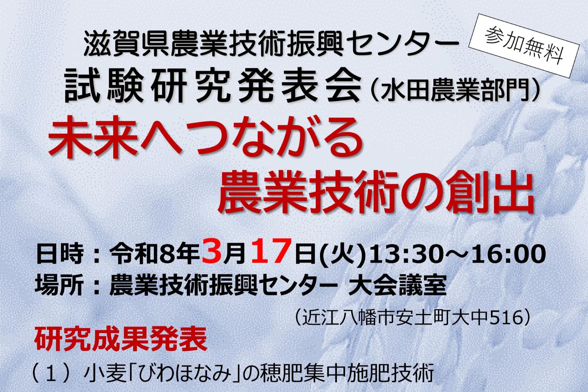 農業技術振興センターでは、令和7年度 農業技術振興センター試験研究発表会(水田農業部門)を下記の通り開催されます。
